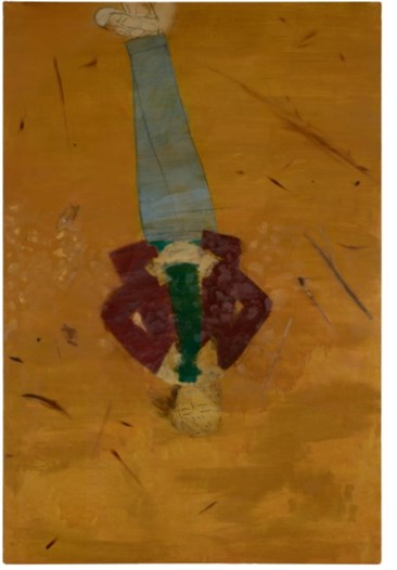 Justin Caguiat, Untitled, 2018, oil, gouache and printed paper collage on unstretched canvas, 54 ¾ x 36in. (139 x 91.4cm.) Image credit CHRISTIE’S IMAGES LTD. 2025