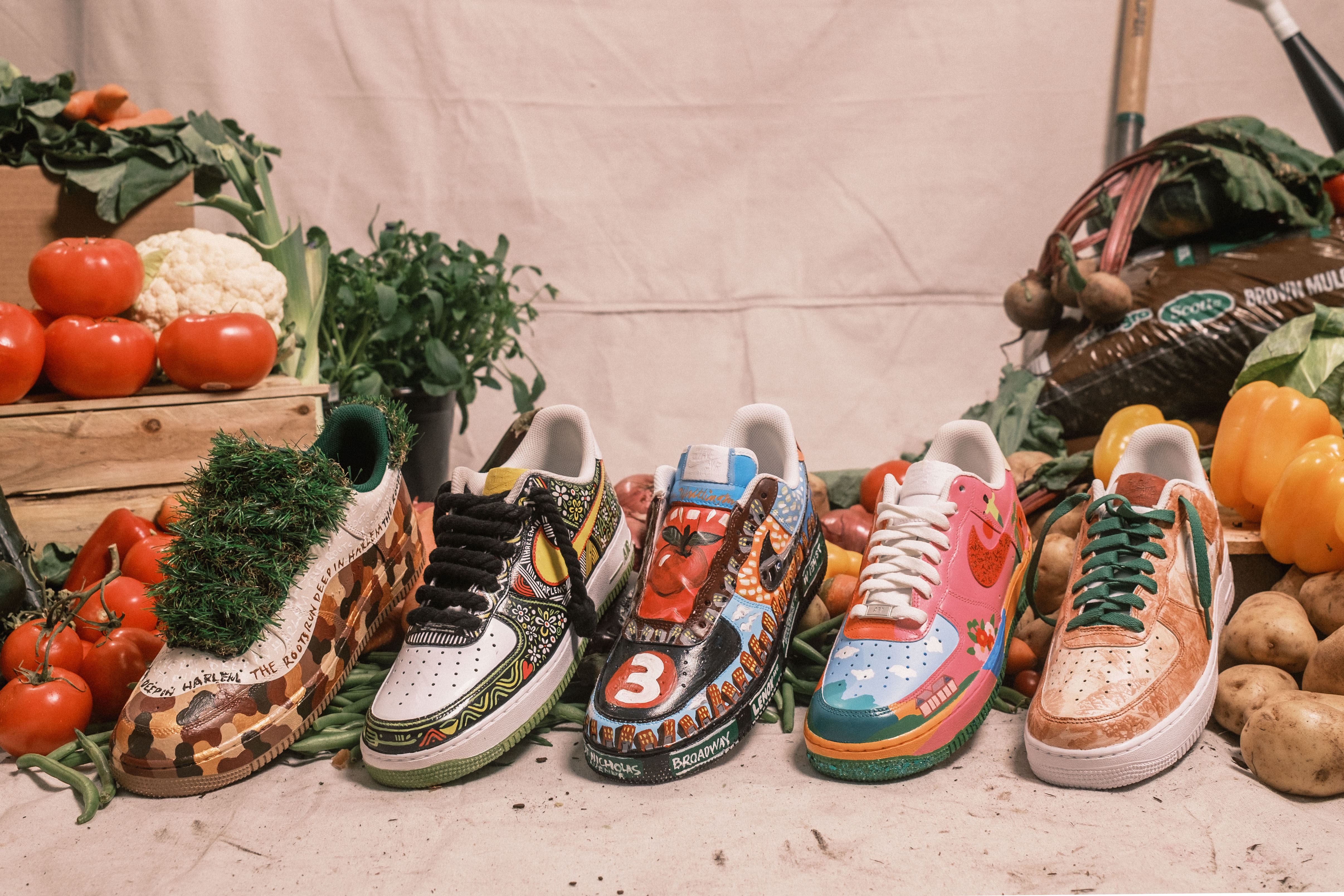 Pulled straight from the Harlem earth comes an art collection only Harlem could create — custom Air Force 1 sneakers reconceived by New York artists with paint pigment extracted from the farm produce of iconic non-profit Harlem Grown.